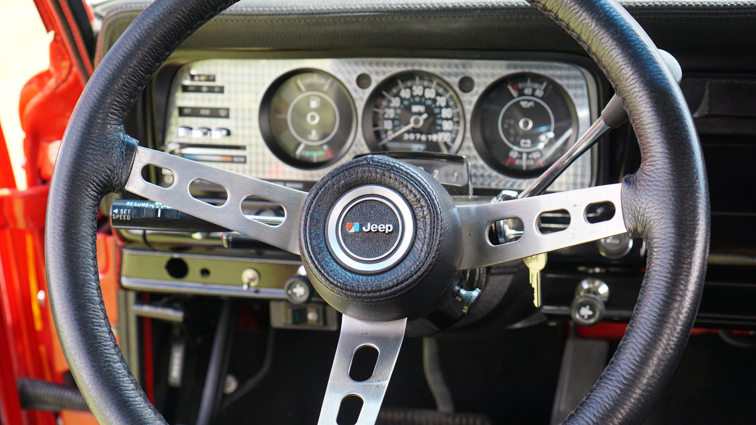 The restoration journey took the vehicle to its bare frame, sandblasted, galvanized, and powder-coated to ensure it would never succumb to rust. The body, treated to the highest standards of media blasting, metalizing, and painting, shines as a beacon of meticulous craftsmanship. The drivetrain was not left behind, receiving a comprehensive upgrade to an AMC 401 engine, the largest ever made by AMC in those days.